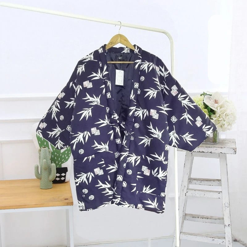 - Type de vêtement : kimono court femme, style haori revisité, manches chauve-souris.