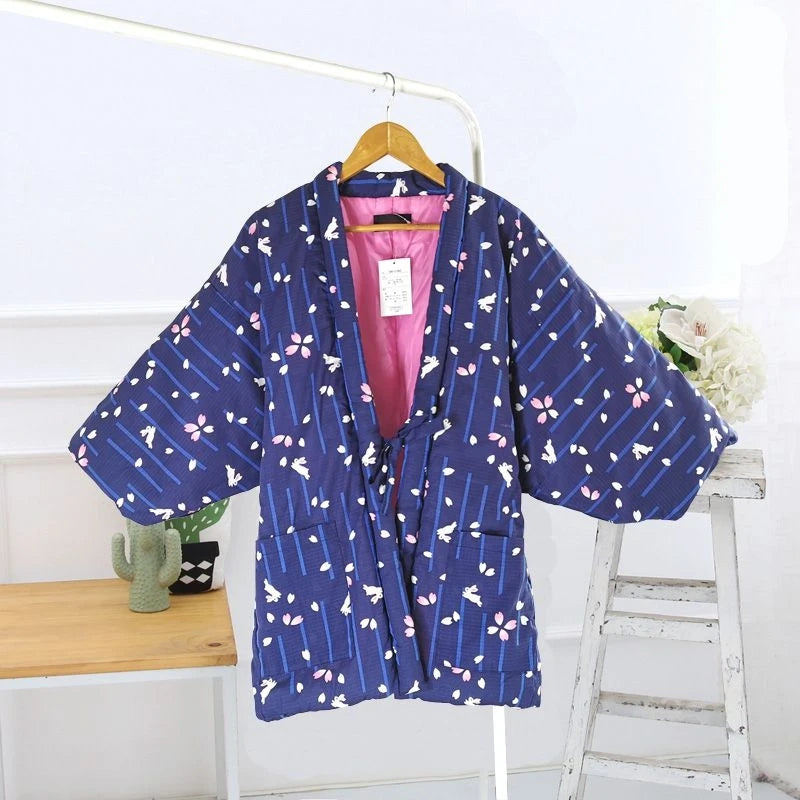- Type de vêtement : kimono court femme, style haori revisité, manches chauve-souris.