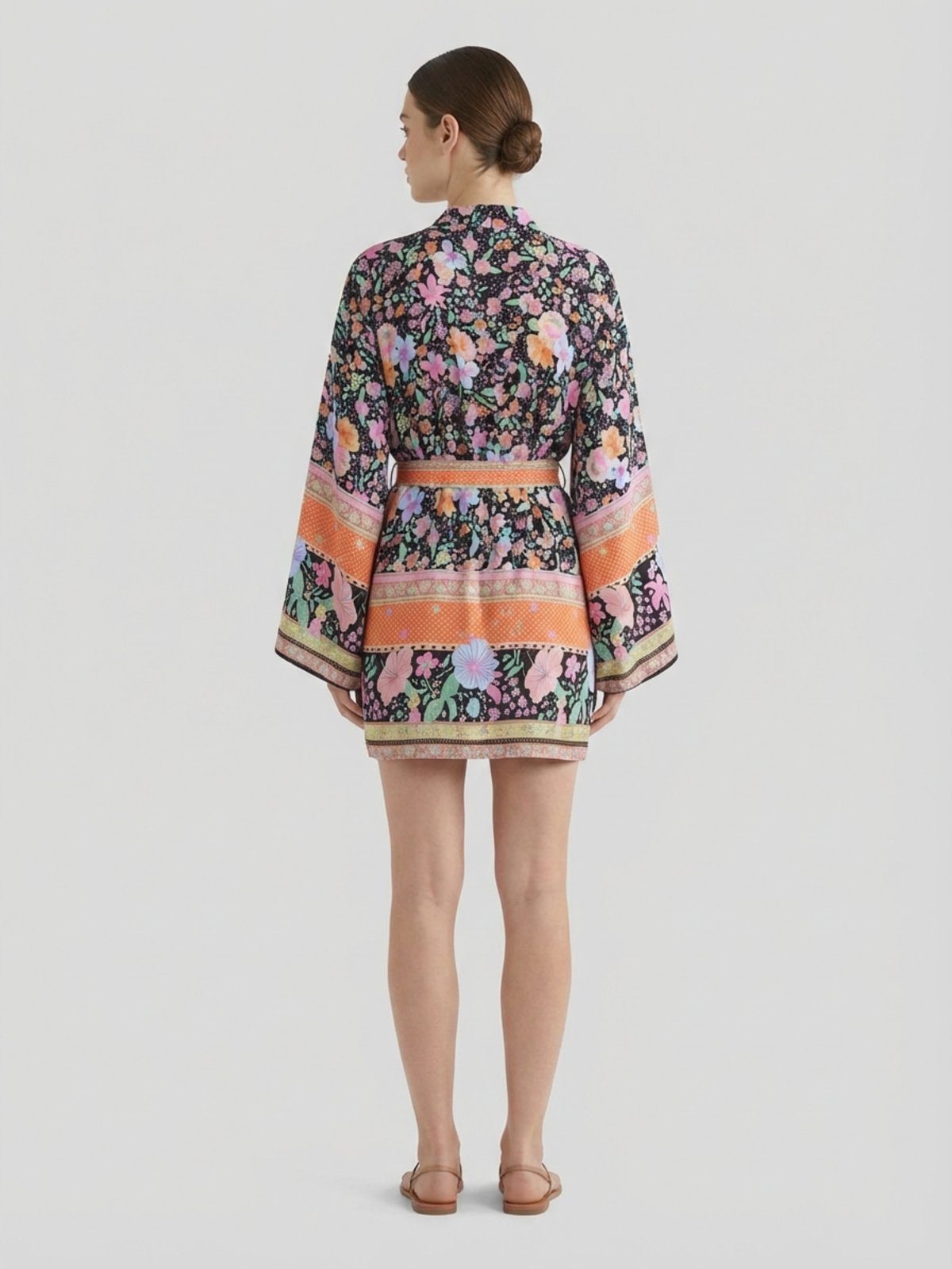 Lavez ce kimono à l'eau froide, cycle délicat ou à la main pour préserver les couleurs et la douceur du tissu. Évitez l'eau chaude et le sèche-linge intense ; préférez un séchage à l'air à plat ou sur cintre à l'ombre. Repassage doux si nécessaire. Pour un look bohème-chic, associez-le à une robe longue fluide et sandales, ou portez-le ouvert sur un top et un jean pour une allure urbaine et sophistiquée..