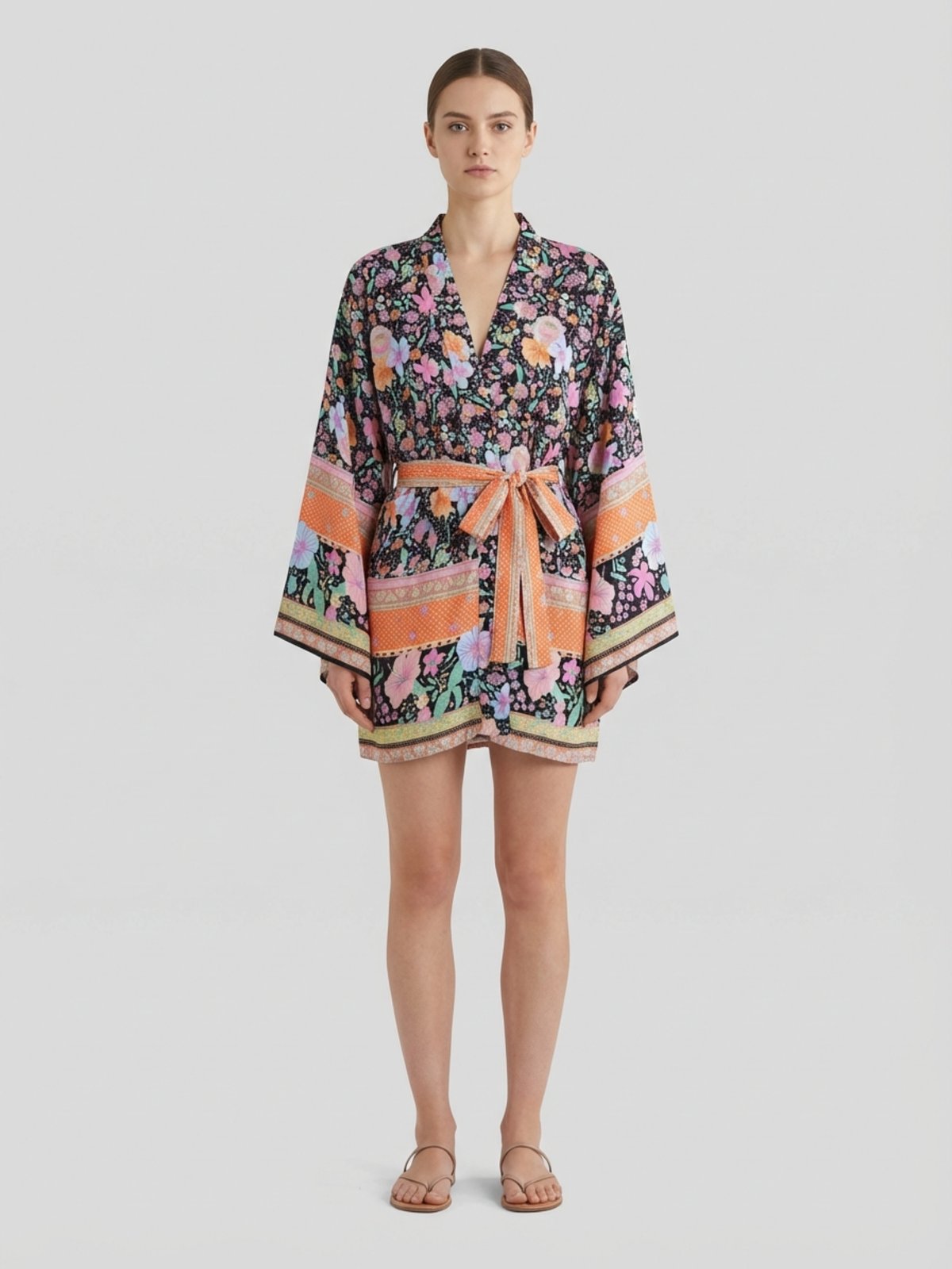 Confectionné dans un mélange doux et aérien (rayon / coton tricoté), ce vêtement se porte aussi bien en journée qu'en soirée : superposé sur une robe, sur un jean taille haute ou comme kimono de plage, il devient la pièce maîtresse d'un look raffiné et décontracté. Disponible chez Kimonowa, il séduira les amantes des imprimés naturels et des coupes inspirées des haori traditionnels.
