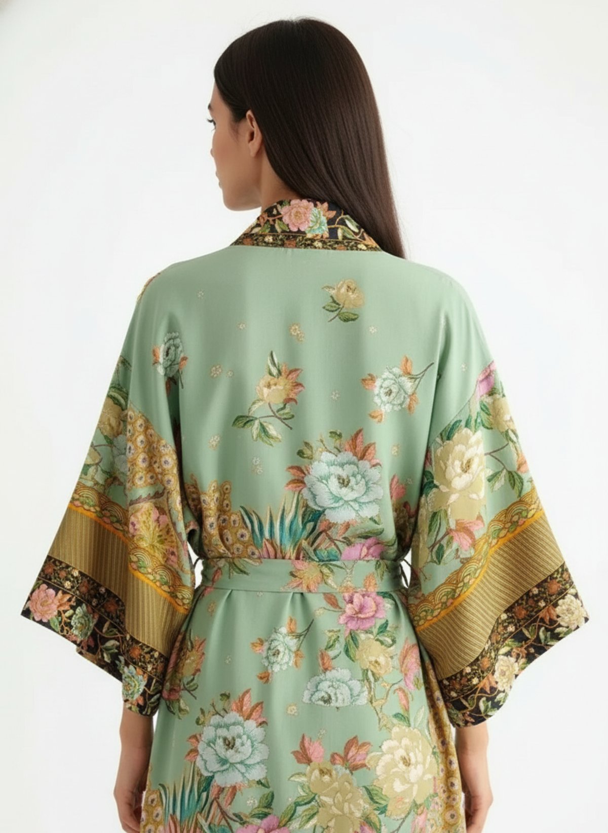 Lavez ce kimono à l'eau froide, cycle délicat ou à la main pour préserver les couleurs et la douceur du tissu. Évitez l'eau chaude et le sèche-linge intense ; préférez un séchage à l'air à plat ou sur cintre à l'ombre. Repassage doux si nécessaire. Pour un look bohème-chic, associez-le à une robe longue fluide et sandales, ou portez-le ouvert sur un top et un jean pour une allure urbaine et sophistiquée..