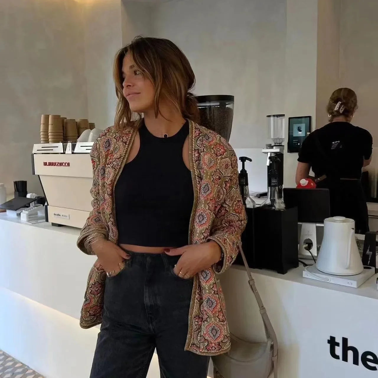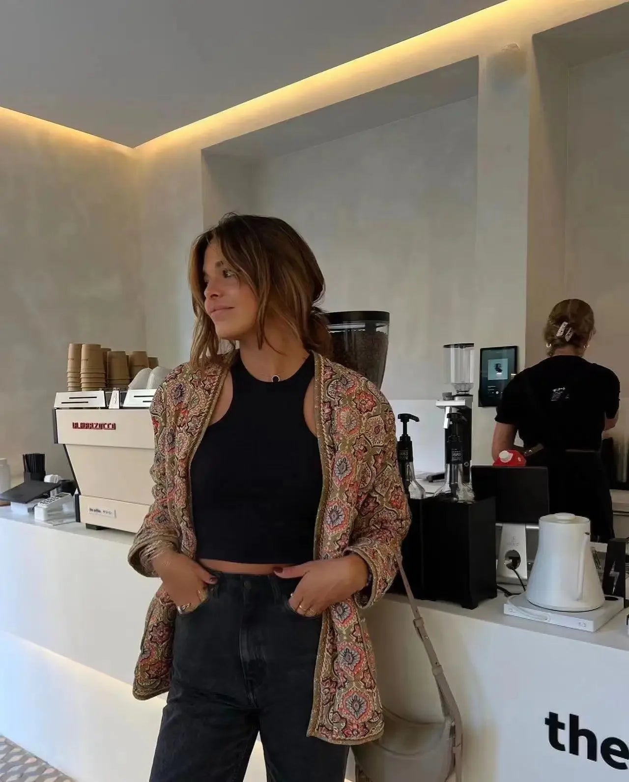 Marta D. Oct 2025Acheteur VérifiéJe le porte partout, à la maison comme dehorsJ’adore ce kimono, il est super polyvalent. Je le mets le matin à la maison comme peignoir léger, mais aussi par‑dessus un jean et un top pour sortir. Il donne tout de suite un style chic et détendu. Le tissu est léger mais de bonne qualité, parfait pour toutes les saisons.Veste kimono matelassée | Kazahana Cet avis vous a‑t‑il été utile ? 0 0