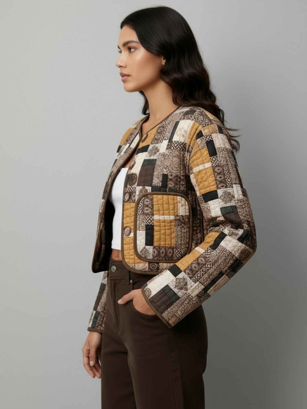 Inspirez-vous de l'esthétique japonaise revisitée avec ce kimono court pour femme, orné d'un motif paon aux accents bohèmes. Sa coupe fluide et ses manches chauve-souris offrent une silhouette sophistiquée tout en garantissant une grande liberté de mouvement — parfait pour apporter une touche artistique à vos tenues sans sacrifier le confort.
